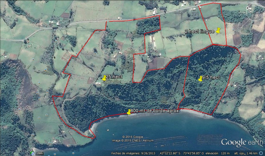 SE VENDE CAMPO DE 35 HAS CON 800 METROS DE RIBERA A ORILLA DE MAR, EN SECTOR LINGUE